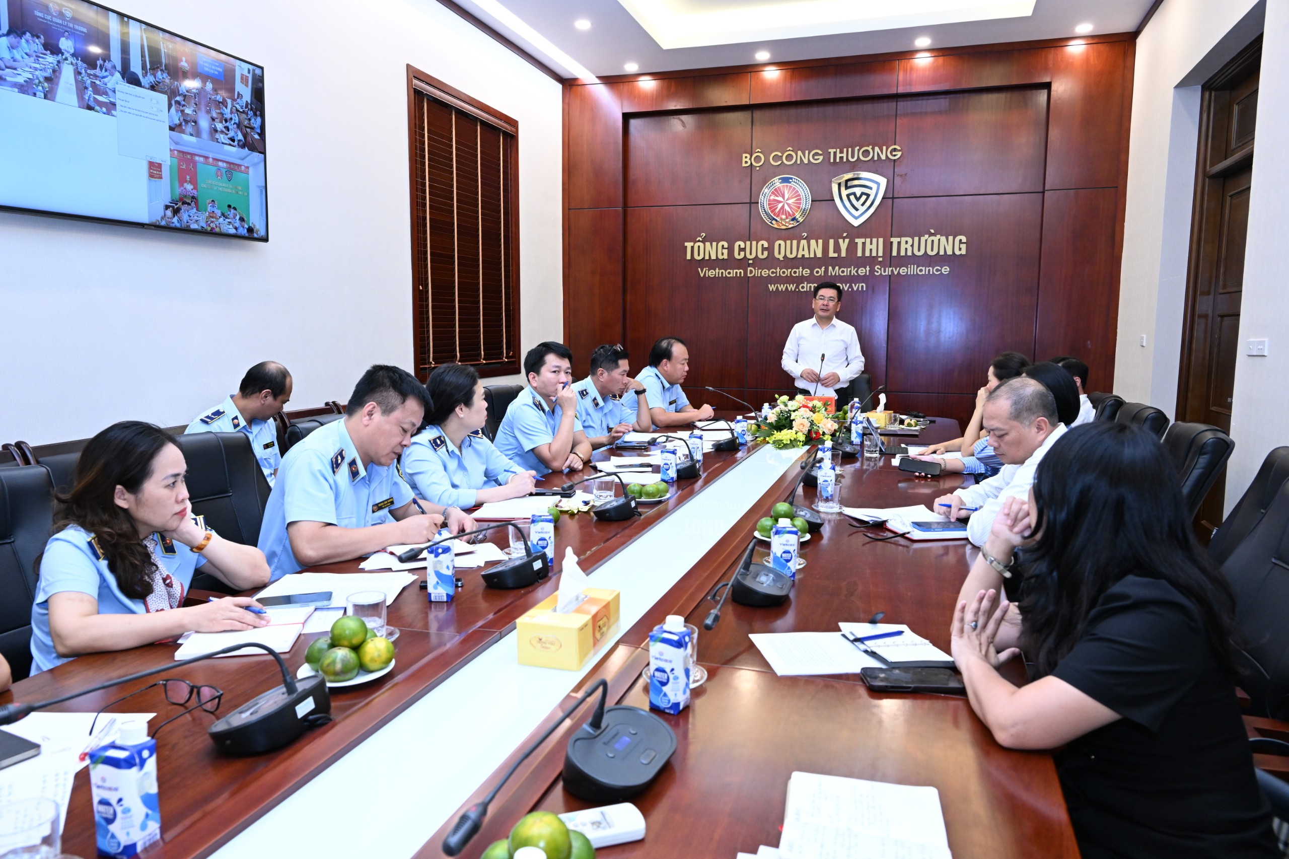 Tham dự buổi làm việc có Thứ trưởng Bộ Công Thương Nguyễn Sinh Nhật Tân, lãnh đạo các đơn vị thuộc Bộ Công Thương gồm: Tổng cục Quản lý thị trường, Văn phòng Bộ, Thanh tra Bộ, Vụ Pháp chế, Vụ Kế hoạch - Tài chính, Vụ Thị trường trong nước, Cục Xuất nhập khẩu, Cục Công Thương địa phương. Tham dự tại các điểm cầu trực tuyến có lãnh đạo 63 Cục QLTT và lãnh đạo Sở Công Thương các tỉnh, thành phố.