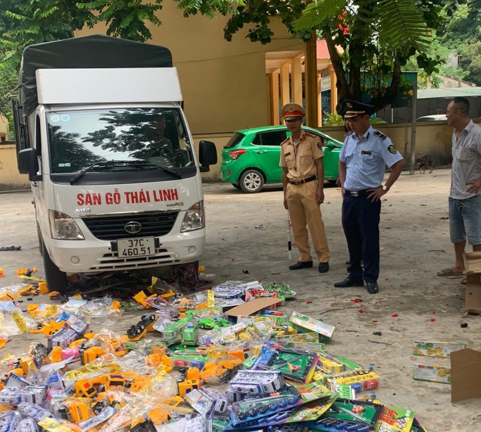 Tại thời điểm kiểm tra, đoàn kiểm tra phát hiện phương tiện đang vận chuyển 500 đồ chơi trẻ em các loại. Trên toàn bộ sản phẩm đồ chơi trên không có nhãn công bố tiêu chuẩn chất lượng, công bố phù hợp quy chuẩn kỹ thuật quốc gia. Chủ phương tiện không xuất trình được hóa đơn, chứng từ chứng minh nguồn gốc xuất xứ của hàng hóa.