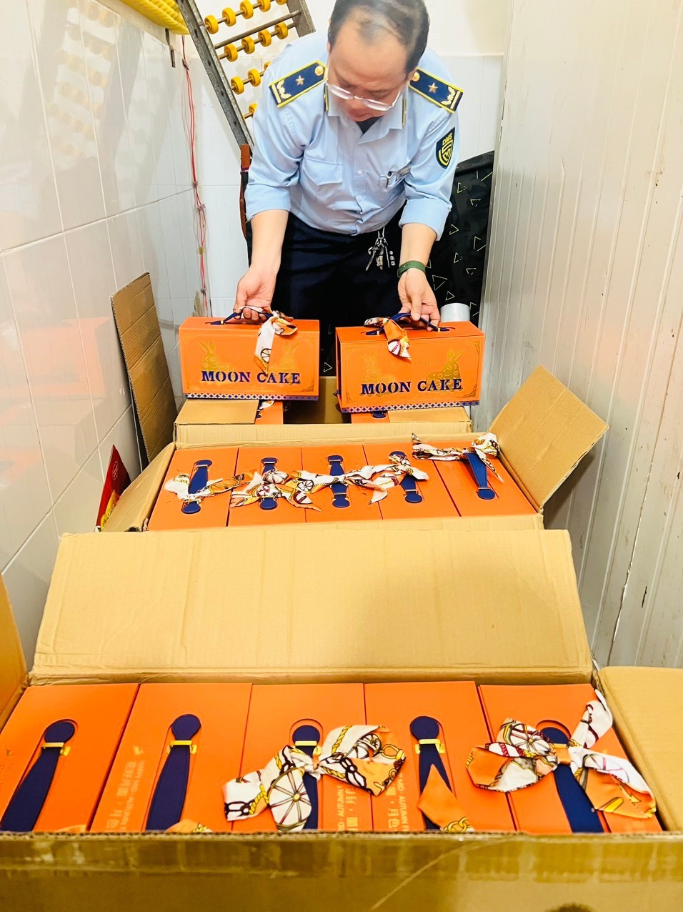 Qua kiểm tra, phát hiện 200 cái bánh Trung thu hiệu KK LAVA CUSTARD, loại 50g/cái, ngày sản xuất 14/8/2023, hạn sử dụng 60 ngày, không có hóa đơn, chứng từ, có nhãn gốc bằng tiếng nước ngoài nhưng không có nhãn phụ bằng tiếng Việt Nam, không rõ nguồn gốc, xuất xứ, không có tài liệu liên quan đến chất lượng sản phẩm, hàng hóa không đảm bảo an toàn cho người sử dụng, chưa qua sử dụng, tổng trị giá hàng hóa là 4.750.000 đồng.